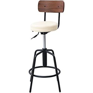 背もたれと座席と軸の配色がなんとも洒落乙です、木とビニールと金属のコントラストが美しさを醸し出しますね、
